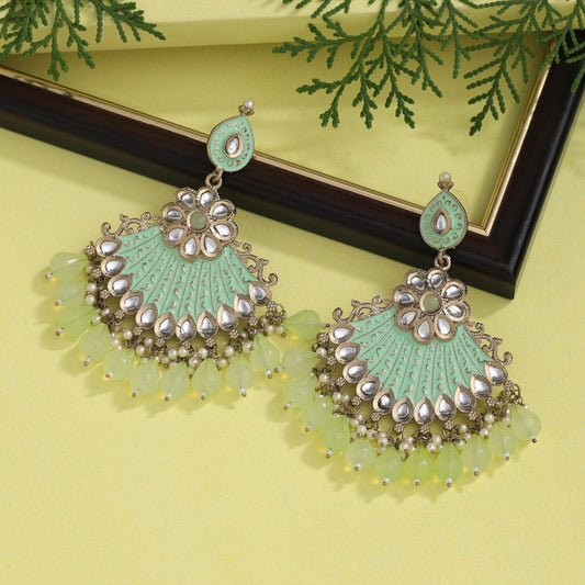 Pista Green Color Kundan Meenakari Earrings (MKE1995PGRN)