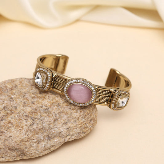 Pink Color Beautiful Handmade Handcuff Bracelets with Moissanite & Monalisa Stones Apala Polish on Brass Metal (ADB356PNK)