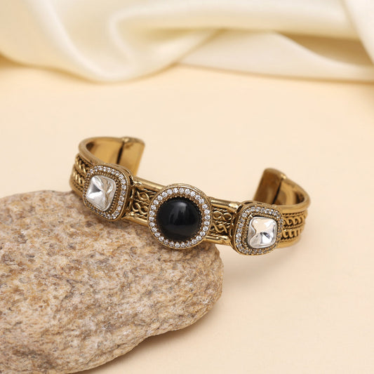 Black Color Beautiful Handmade Handcuff Bracelets with Moissanite & Monalisa Stones Apala Polish on Brass Metal (ADB357BLK)