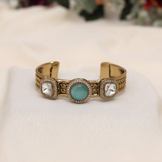 Pista Green Color Beautiful Handmade Handcuff Bracelets with Moissanite & Monalisa Stones Apala Polish on Brass Metal (ADB357PGRN)