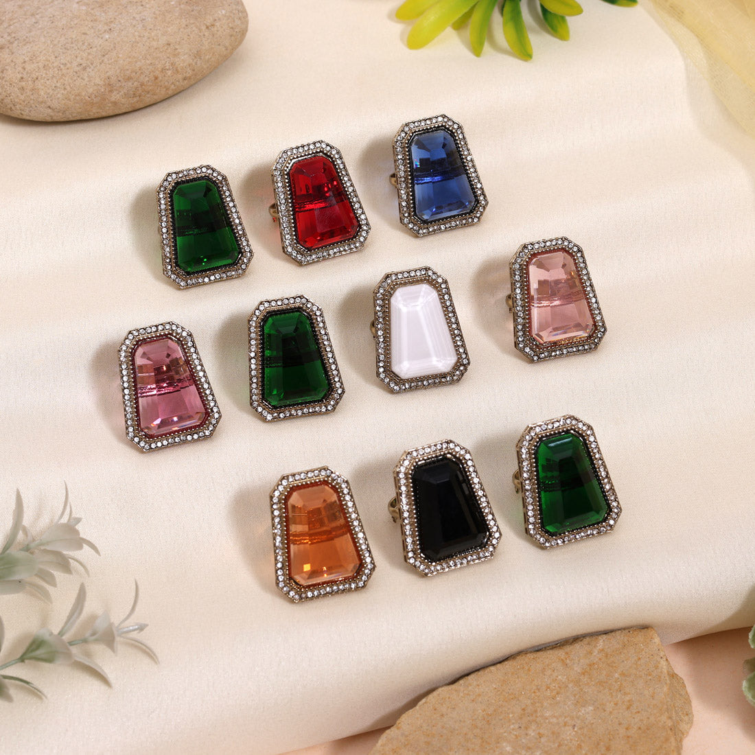 Traditional Assorted Color Kundan Finger Rings Set With 10 Unique Styles