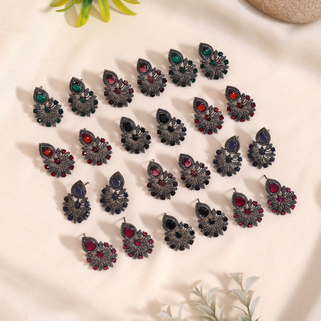 Beautiful Assorted Color 12 Pairs Of Sparkling Fashion Earrings Gift Set