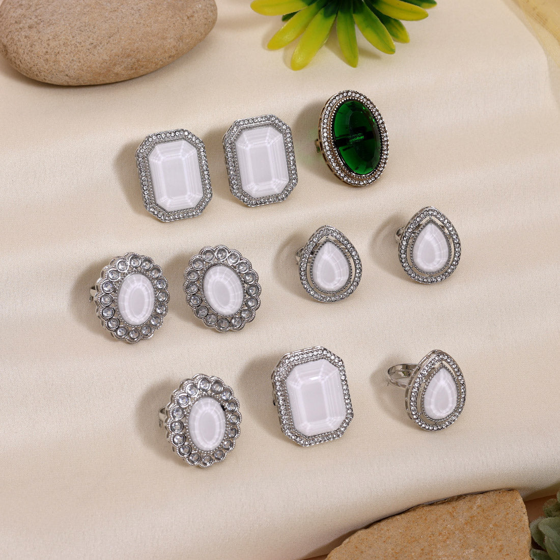 Assorted Color And Design Collection Of 10 Royal Kundan Finger Rings