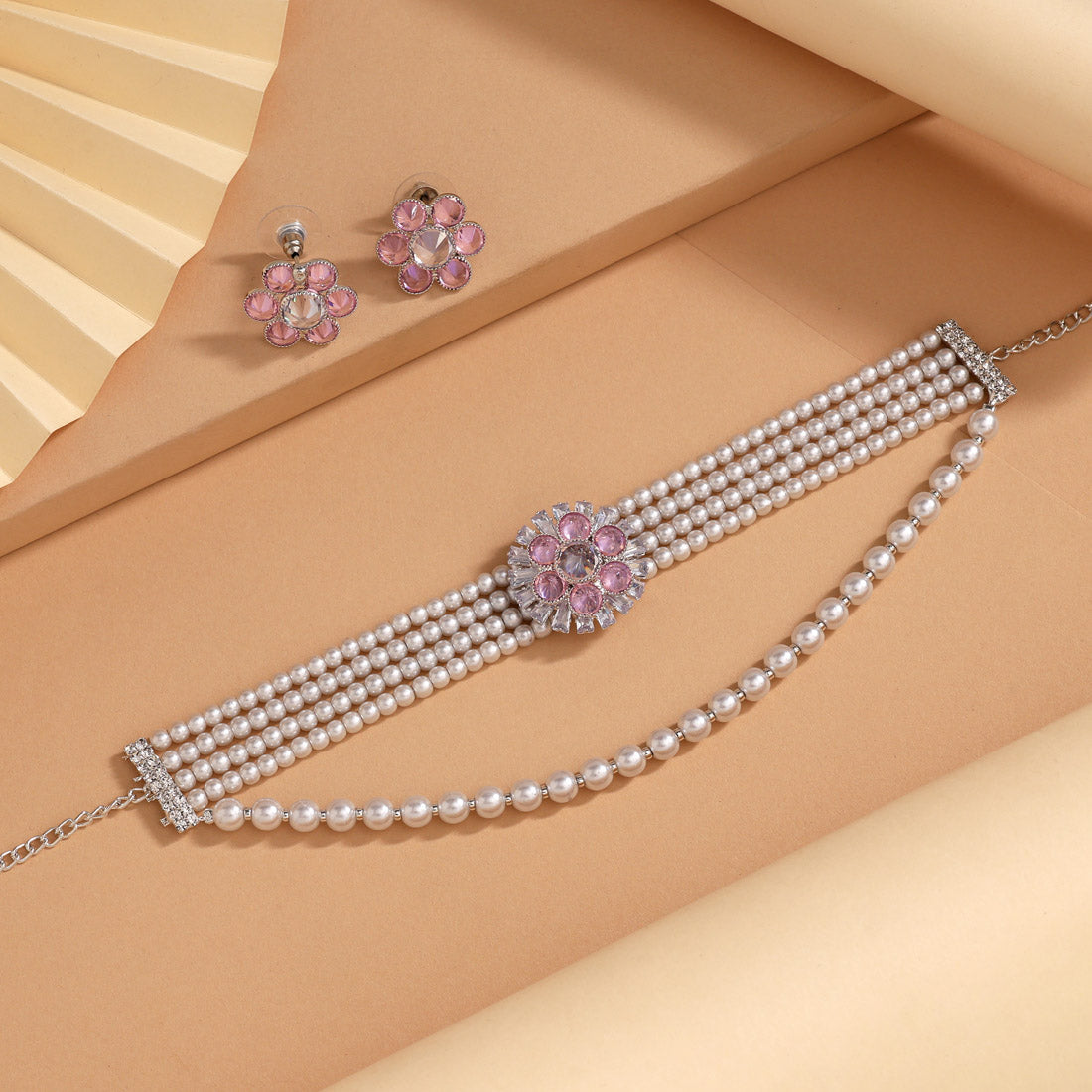 Baby Pink Color Choker Stone Necklace Set (STN244BPNK)