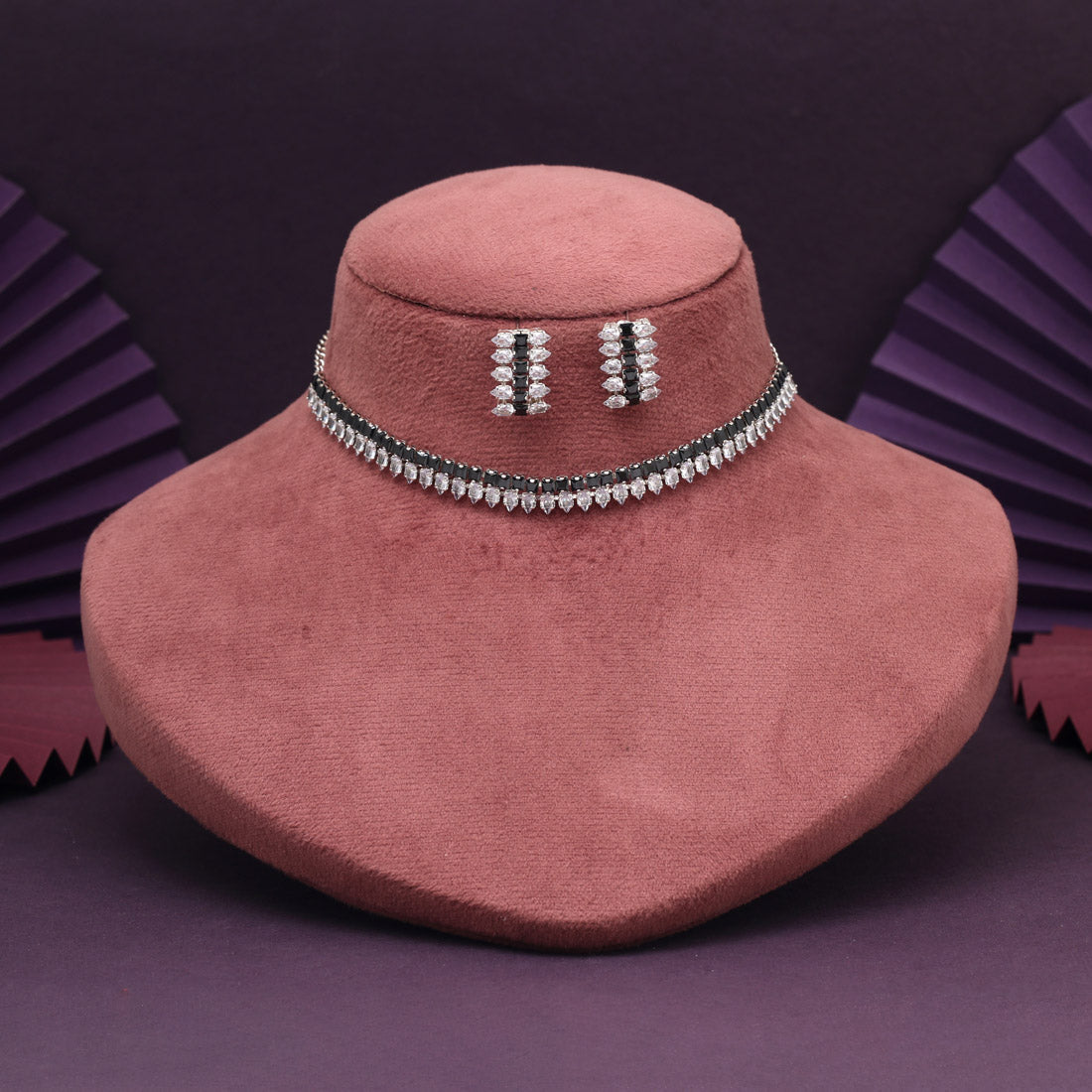 Black Color Stone Necklace Set