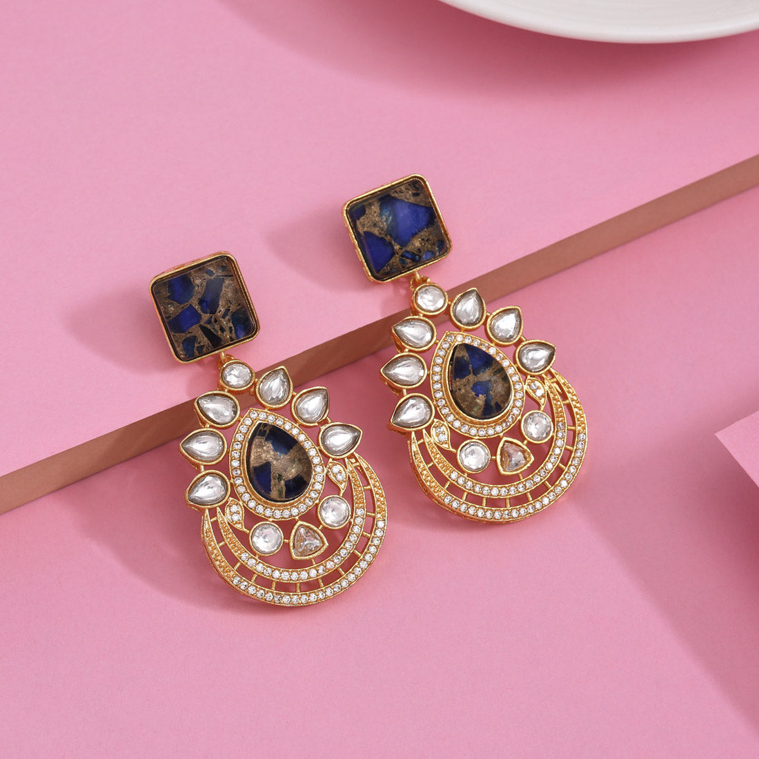 Blue Color American Diamond Earrings With Sparkle For Daily Wear