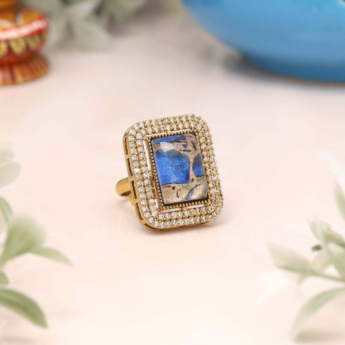 Blue Color American Diamond Finger Ring