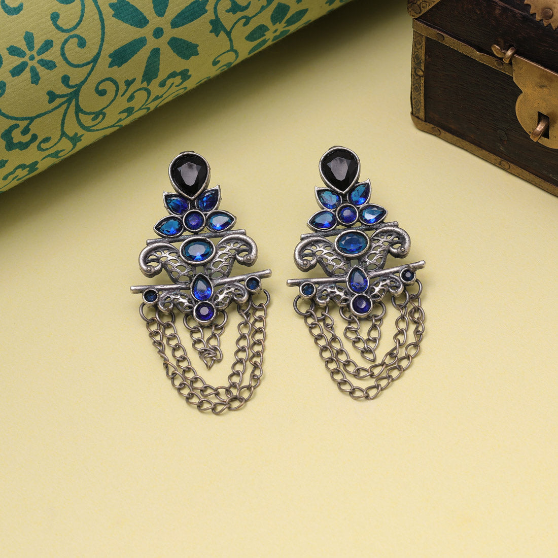 Blue Color Oxidised Fashion Earrings For Contemporary Festival Celebrations