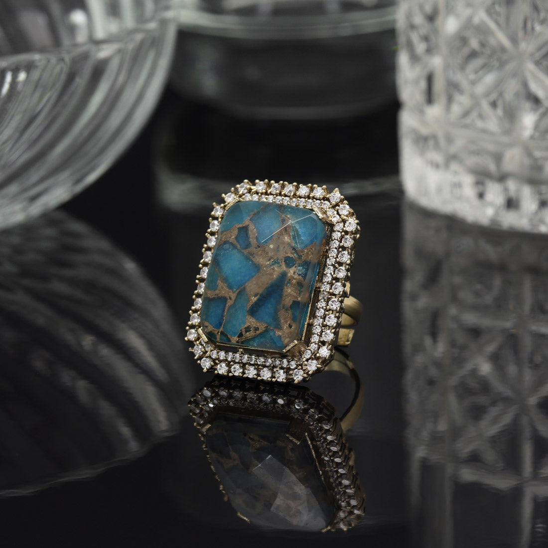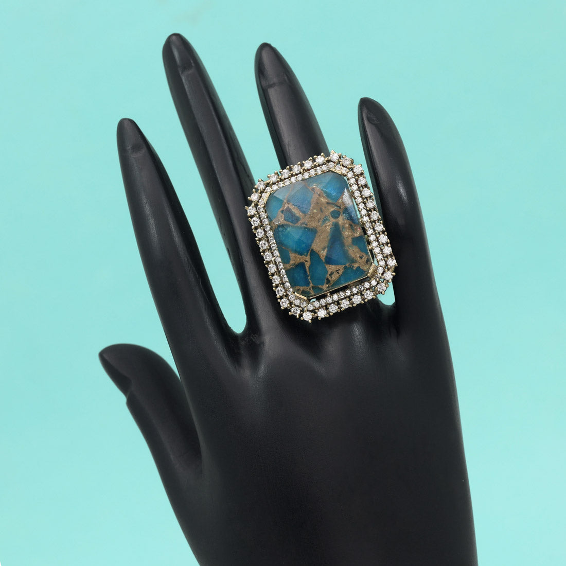 Firozi Color American Diamond Finger Ring