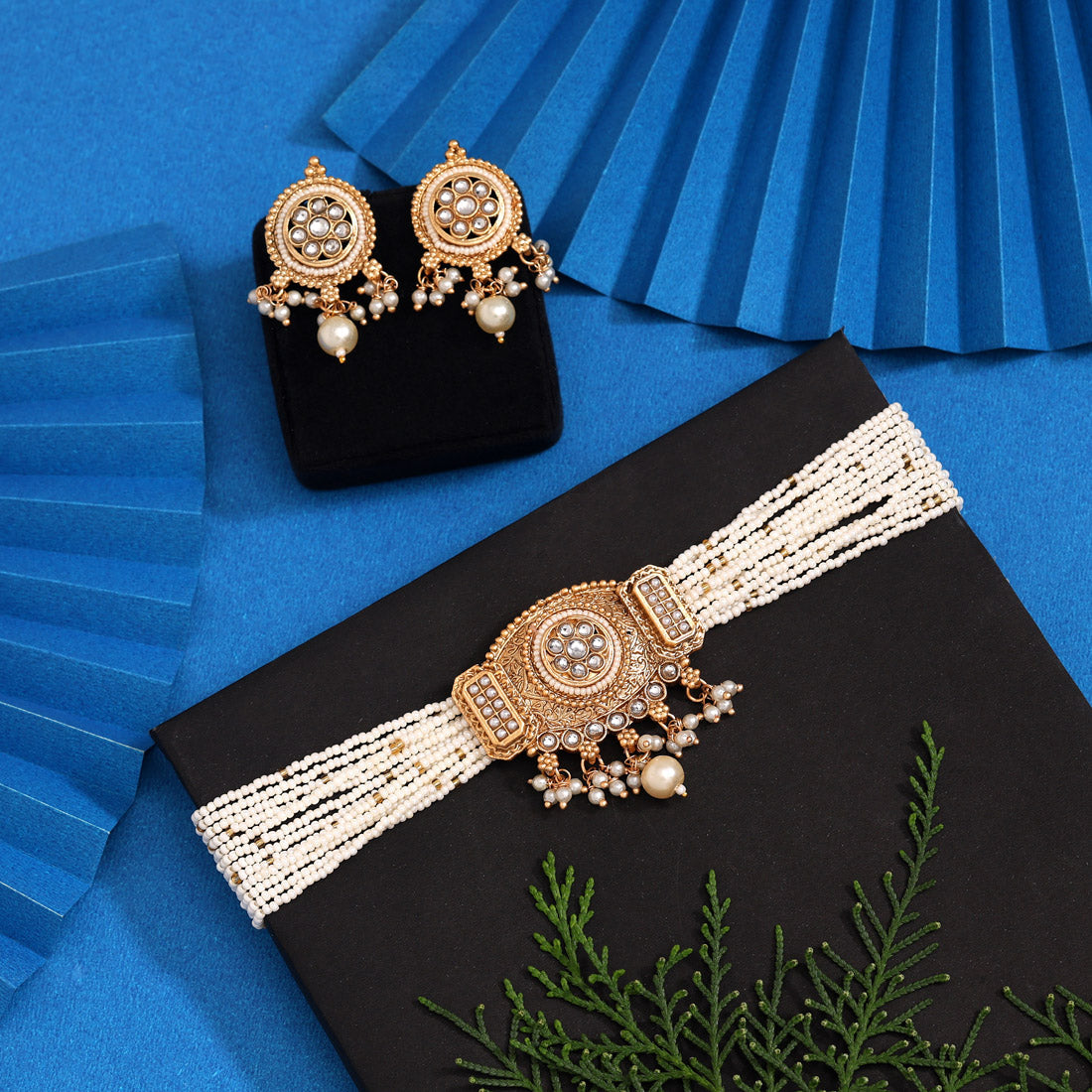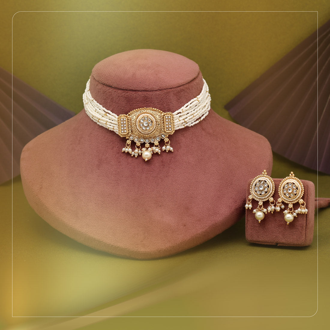 Gold Color Choker Matte Gold Rajwadi Temple Necklace Set