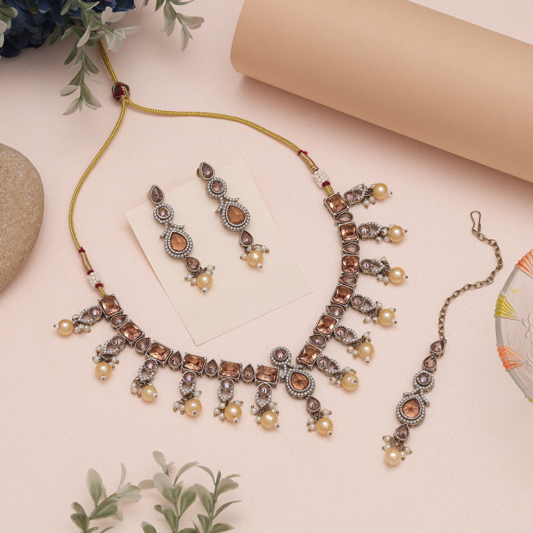1 Piece Of Necklace:: 1 Pair Of Earring:: 1 Piece Of Maang Tikka