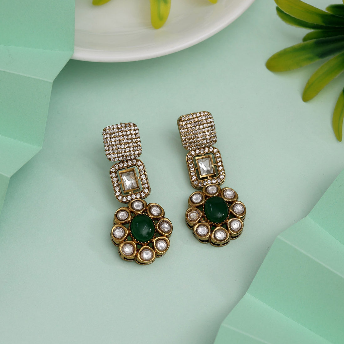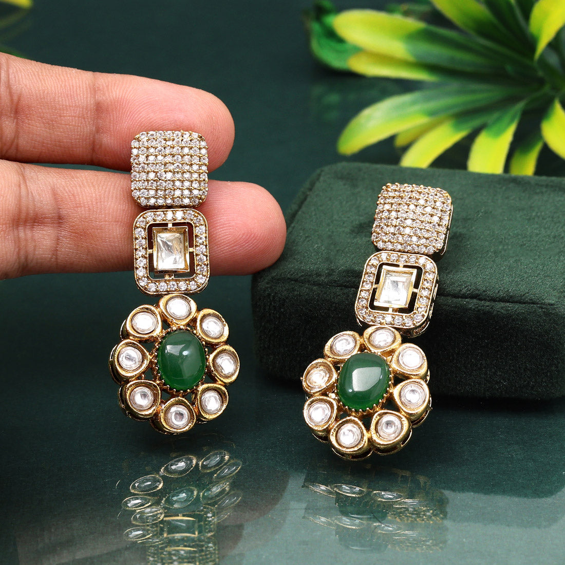 Fresh Green Color American Diamond Earrings Perfect For Festive Occasions