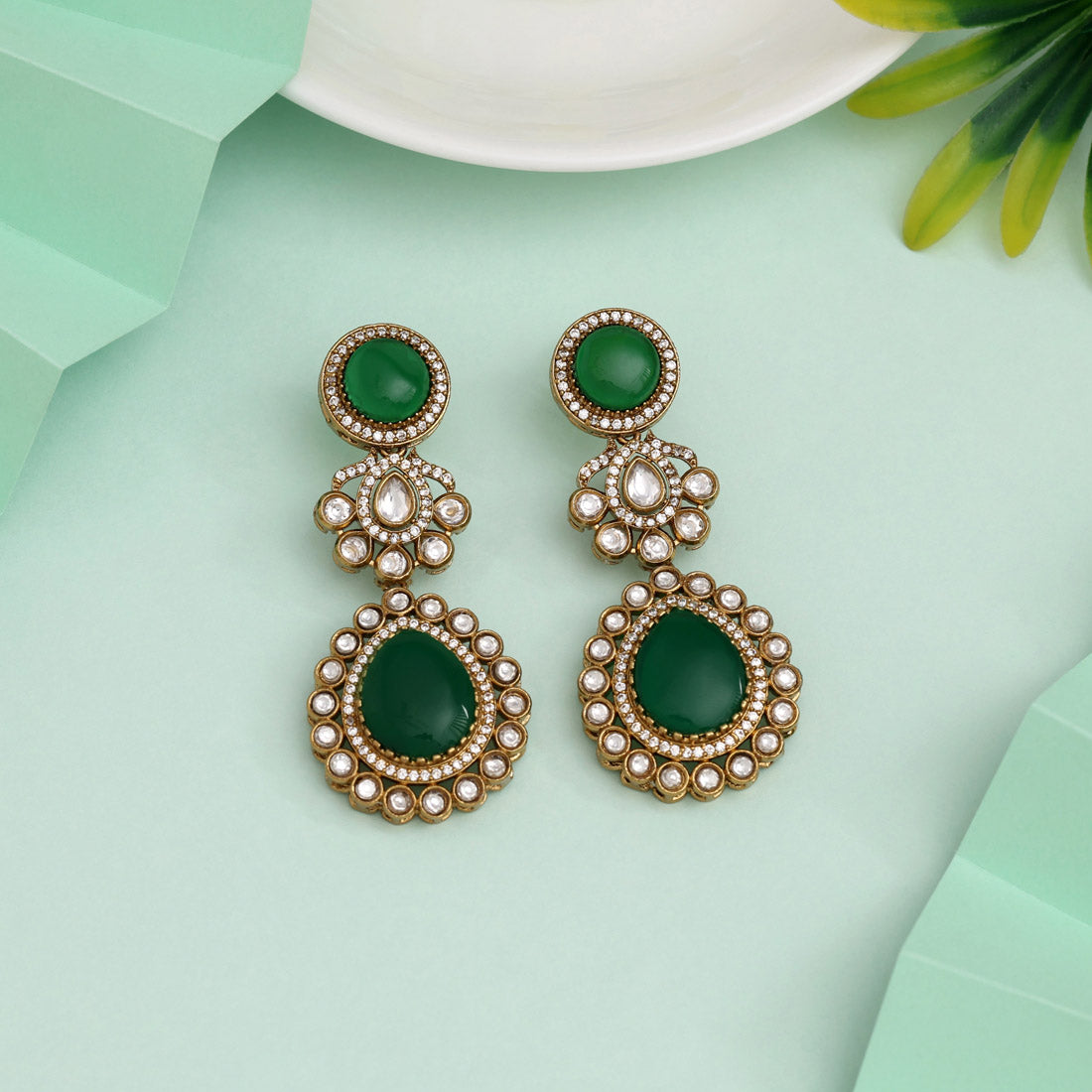 Natural Green Color American Diamond Earrings For Earthy And Ethnic Vibes