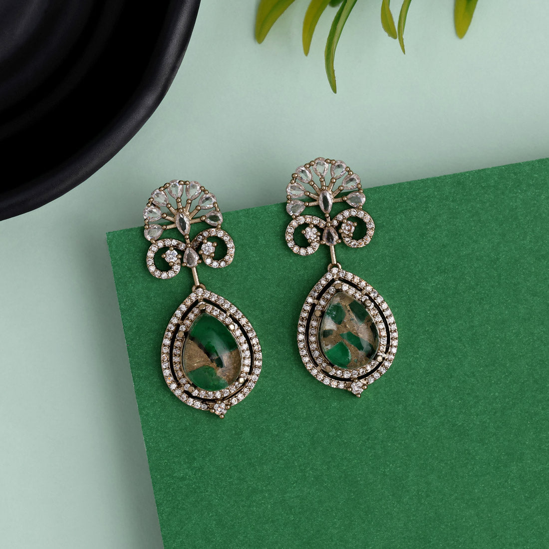 Ethnic Green Color American Diamond Earrings For Traditional Family Gatherings