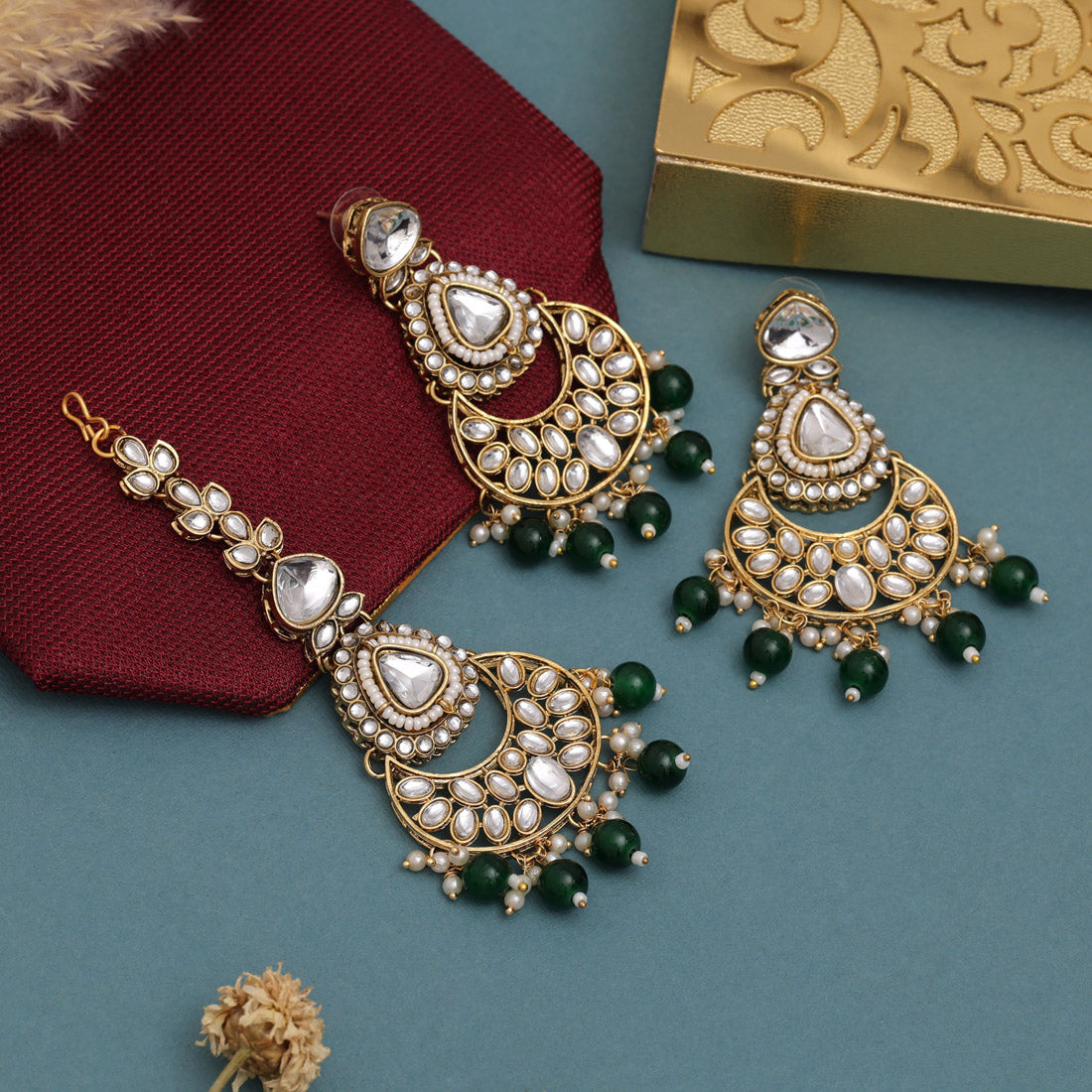 1 Piece Of Necklace:: 1 Pair Of Earring:: 1 Piece Of Maang Tikka