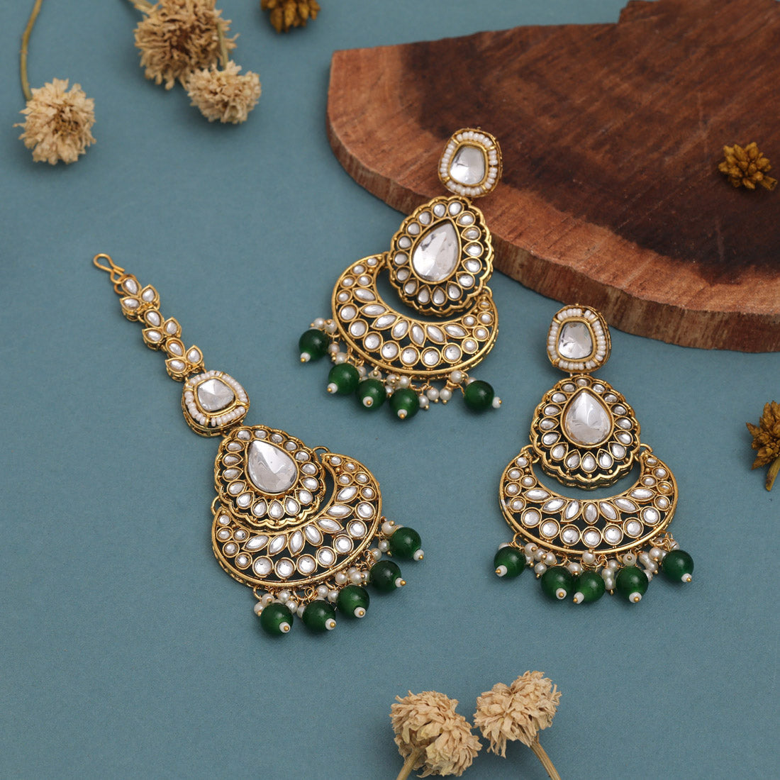 1 Piece Of Necklace:: 1 Pair Of Earring:: 1 Piece Of Maang Tikka