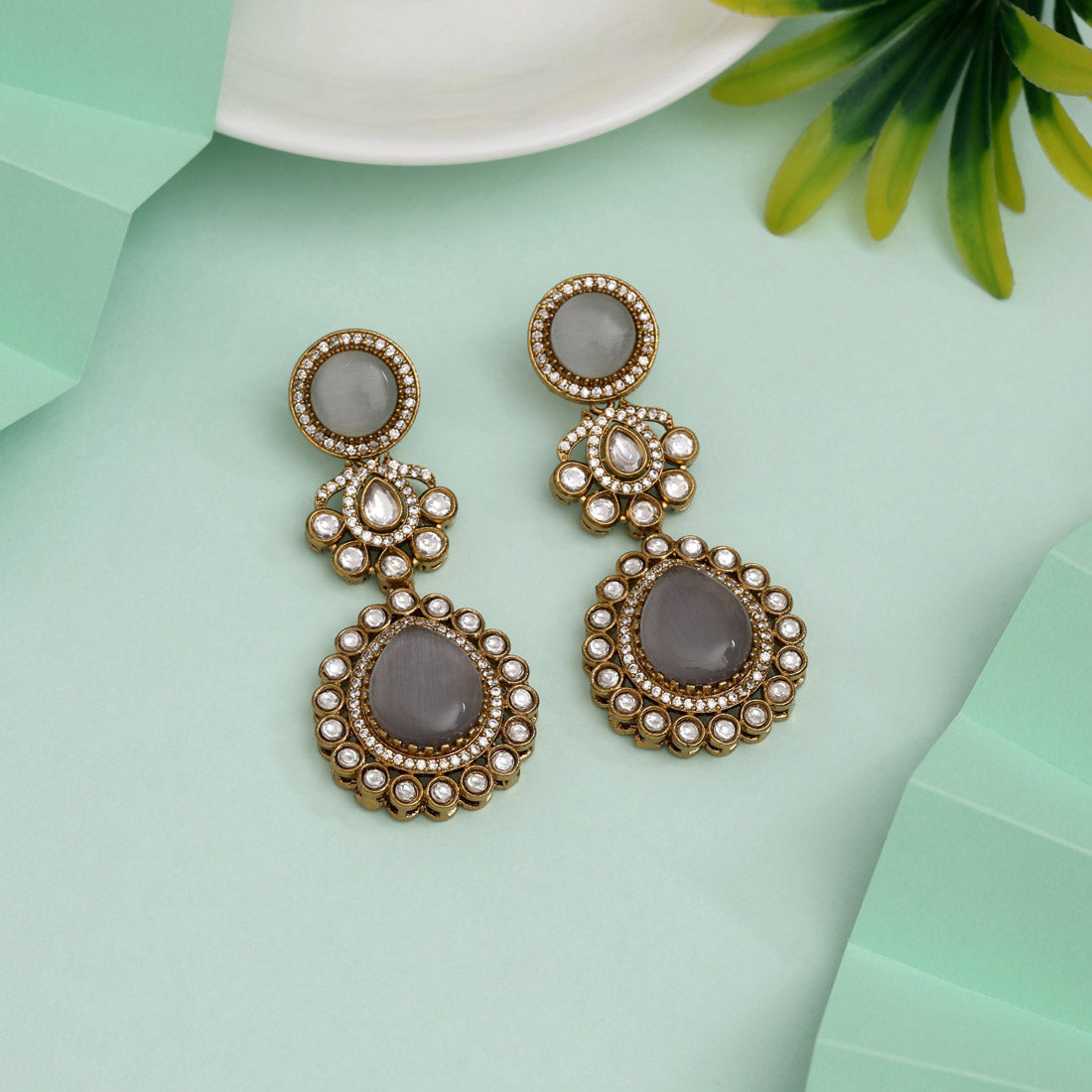 Graceful Grey Color American Diamond Earrings For Elegant Subtle Style