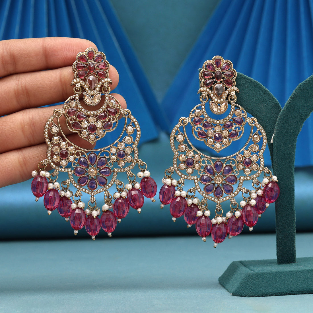 Maroon Color Kundan Earrings