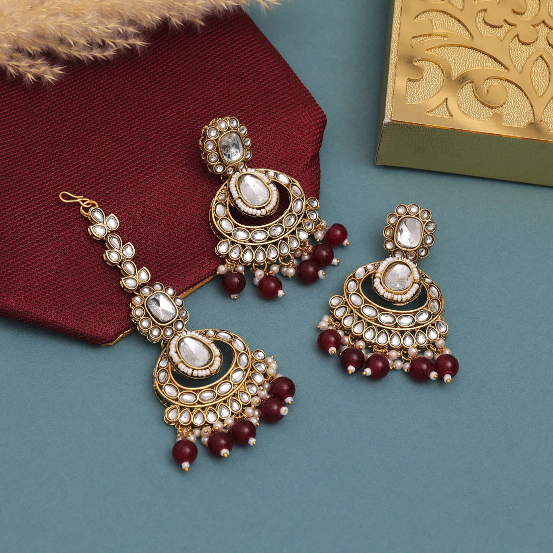 1 Piece Of Necklace:: 1 Pair Of Earring:: 1 Piece Of Maang Tikka