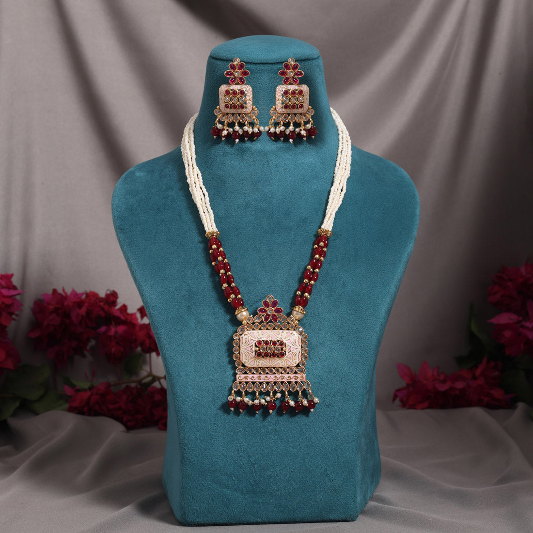 Maroon Color Matte Gold Meenakari Necklace Set