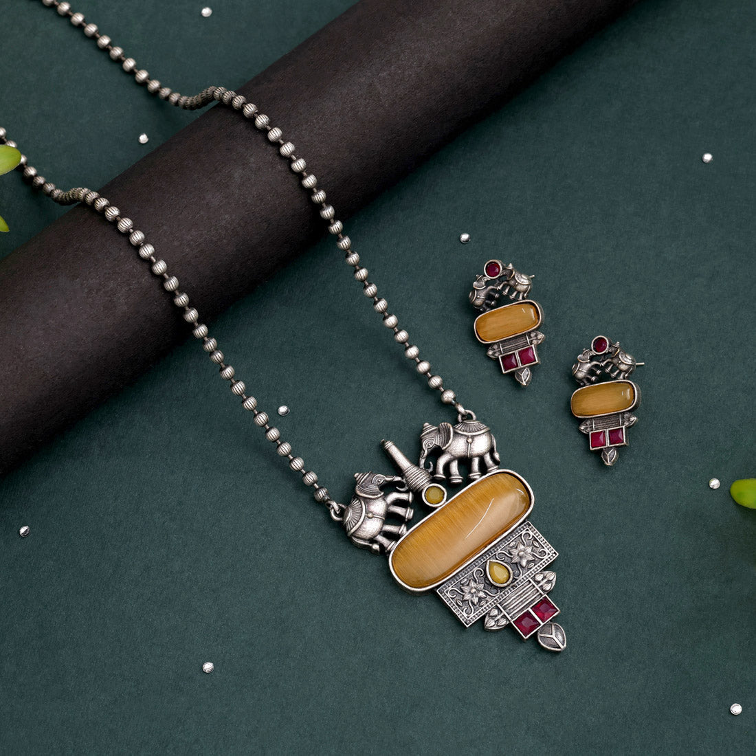 Mustard Yellow Color Long Oxidised Necklace Set With Contemporary Boho Vibes