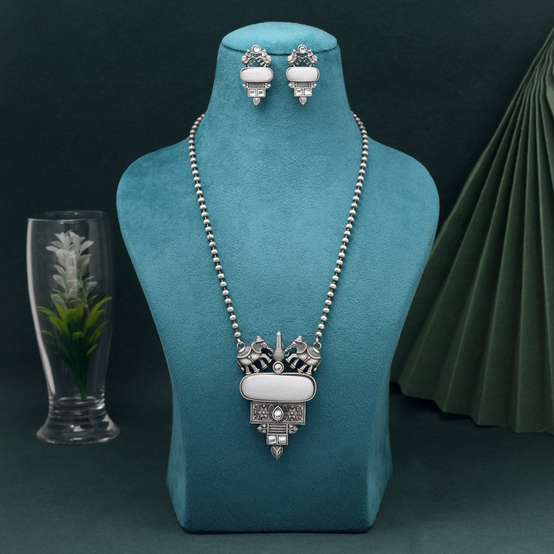 Off White Color Long Oxidised Necklace Set Perfect For Elegant Ethnic Ensembles