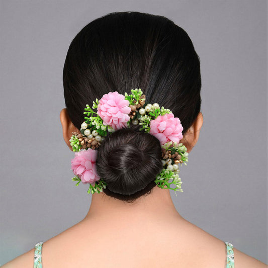 Pink Color Rose Flower Gajra For Women Hair Pin (HRP228PNK)