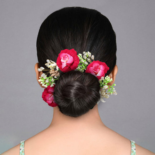 Dark Pink Color Rose Flower Gajra For Women Hair Pin (HRP229DPNK)