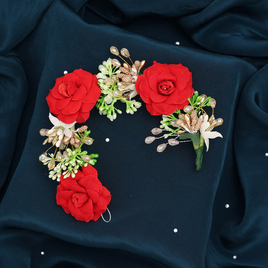 Red Color Rose Flower Gajra For Women Hair Pin (HRP229RED)