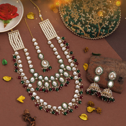 Regular price ₹1,298.00 INRRegular priceUnit price / per₹1,662.00 INRSale price ₹1,298.00 INR AQ: 1Maroon & Green Color Kundan Necklace Set