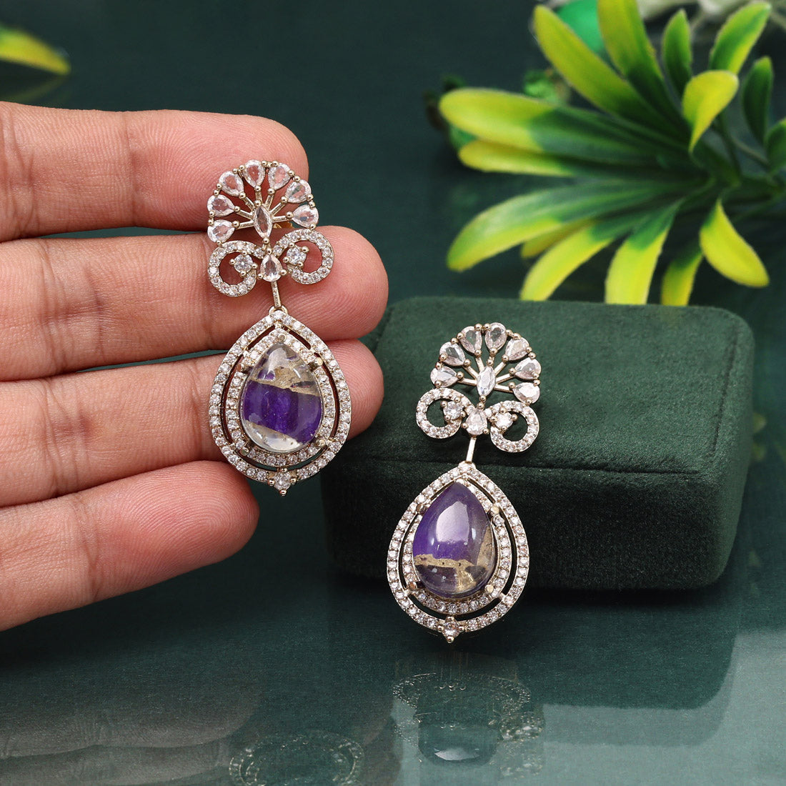 Deep Purple Color American Diamond Earrings With Glamorous Wedding Appeal