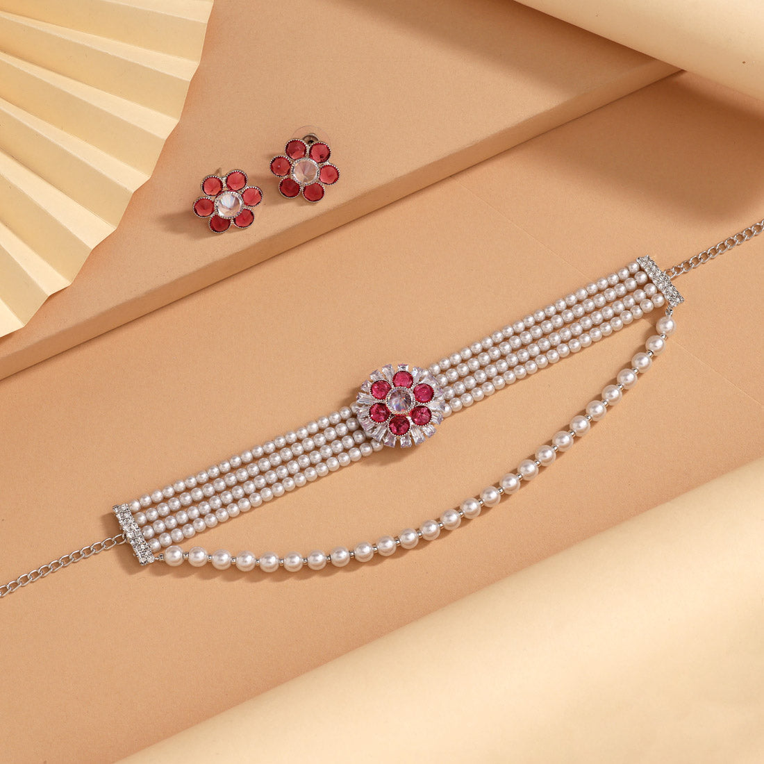 Rani Color Choker Stone Necklace Set (STN244RNI)