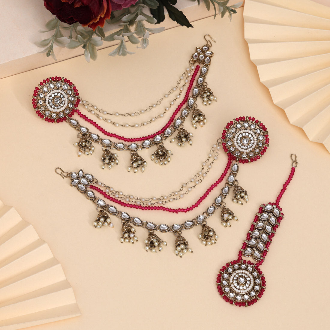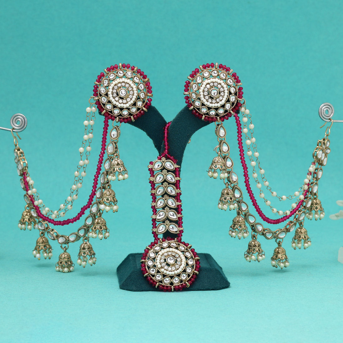 1 Pair Of Earring:: 1 Piece Of Maang Tikka