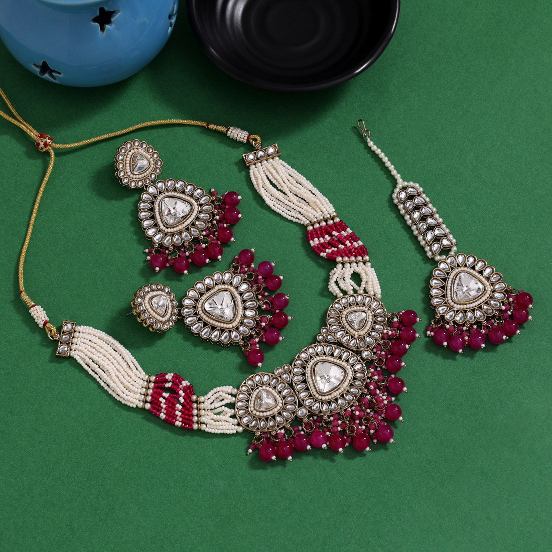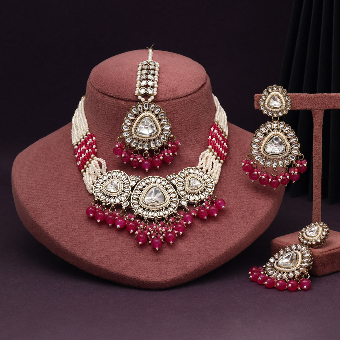 1 Piece Of Necklace:: 1 Pair Of Earring:: 1 Piece Of Maang Tikka