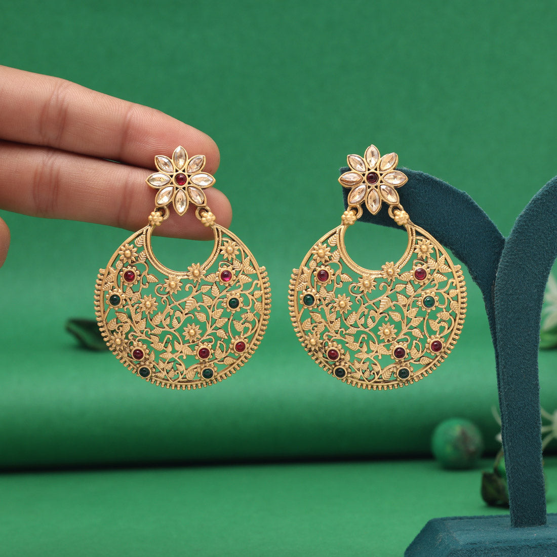 Rani & Green Color Rajwadi Matte Gold Earrings