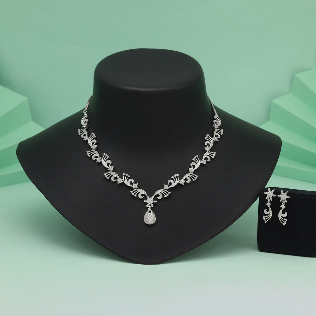 Silver Color American Diamond Necklace Set For Evening Outfits And Wedding Wear