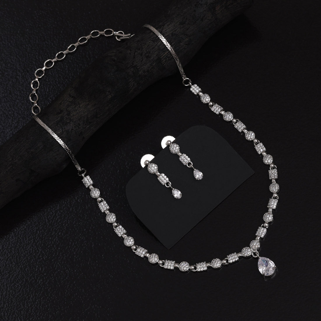 Silver Color American Diamond Necklace Set With Artisanal Touch And Bright Finish