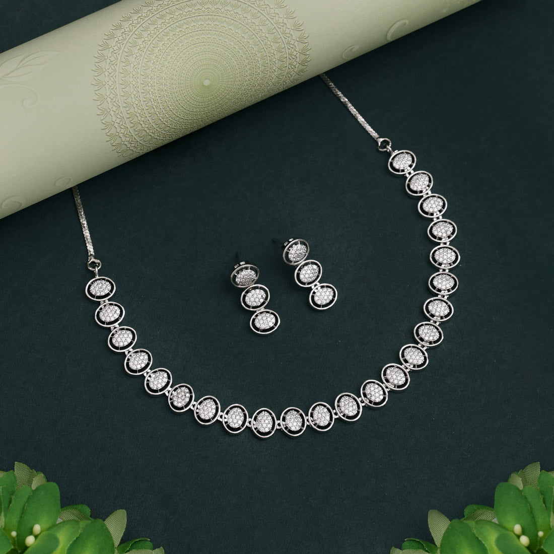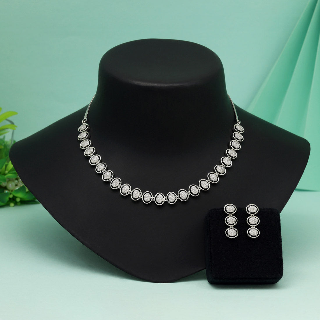Silver Color American Diamond Necklace Set For Sophisticated Styling And Elegance