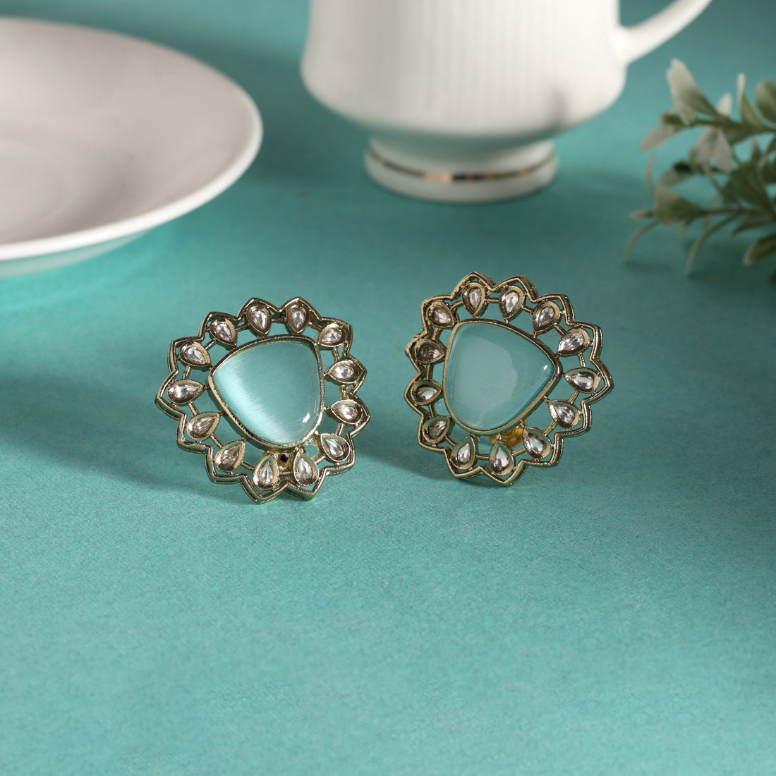 Sky Blue Color American Diamond Earrings