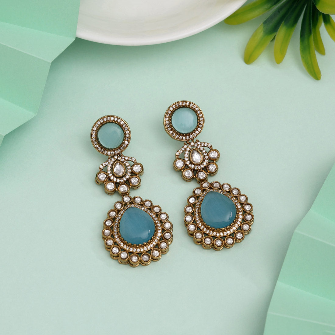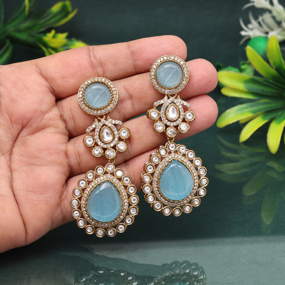 Sky Blue Color American Diamond Earrings For Light And Airy Spring Days