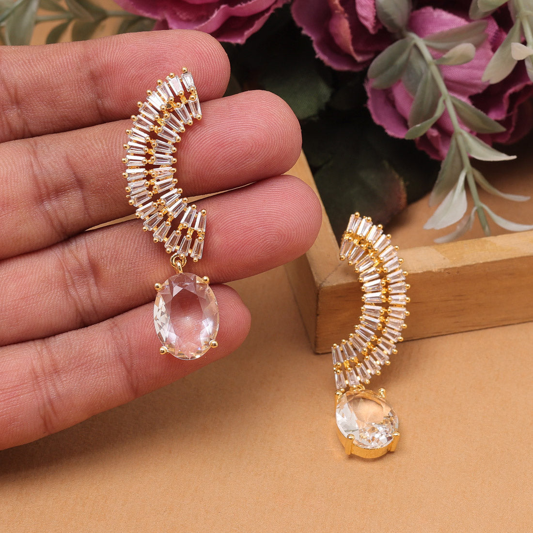 White Color American Diamond Earrings With Glamorous Sparkle For Events