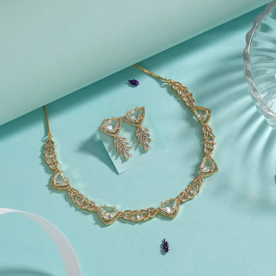 White Color American Diamond Necklaces Set