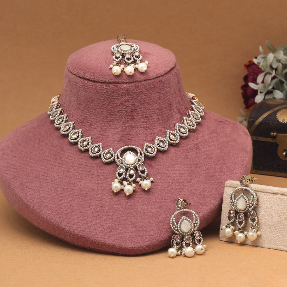 Radiant White Color American Diamond Necklaces Set With Intricate Craftsmanship