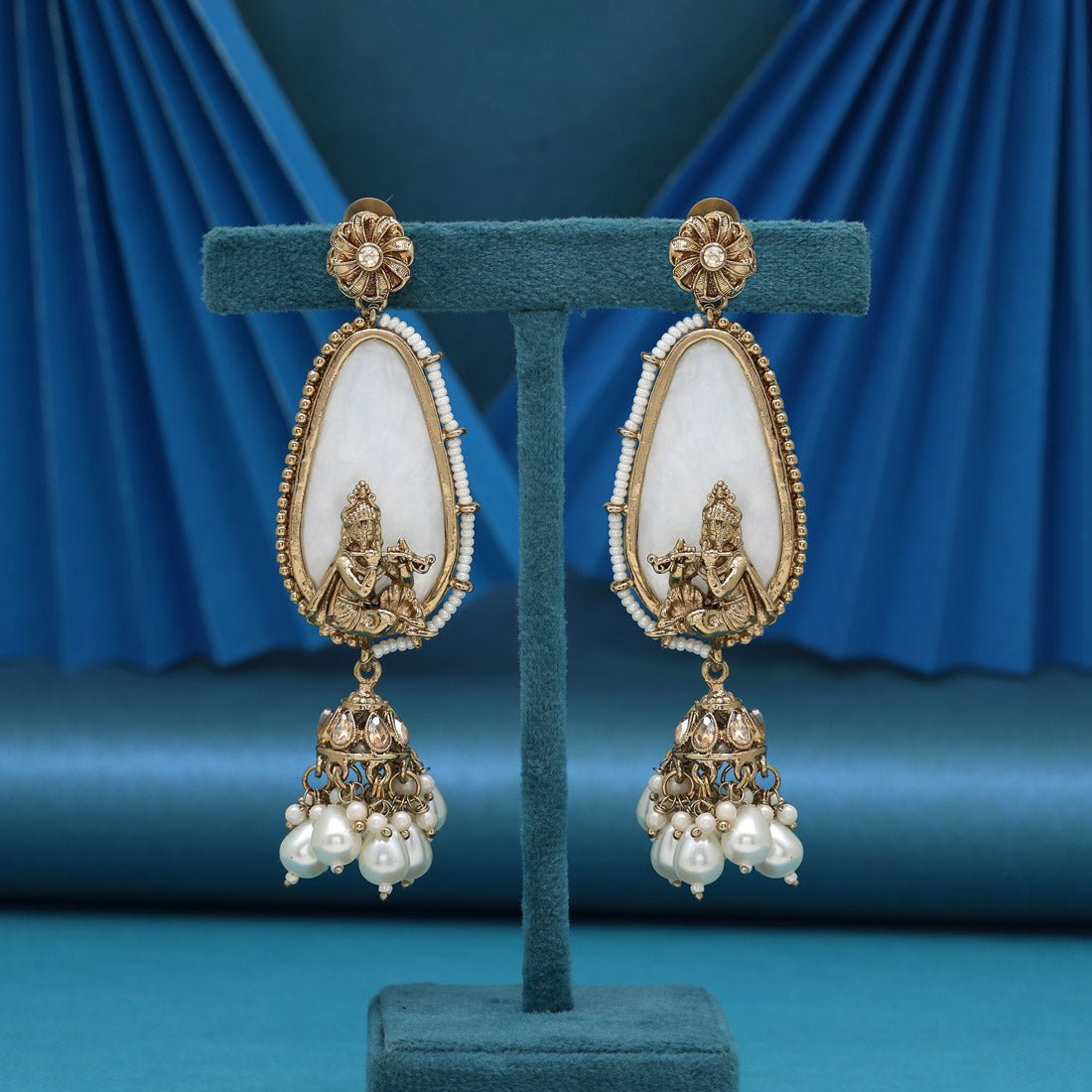White Color Mother Of Pearl Kundan Earrings