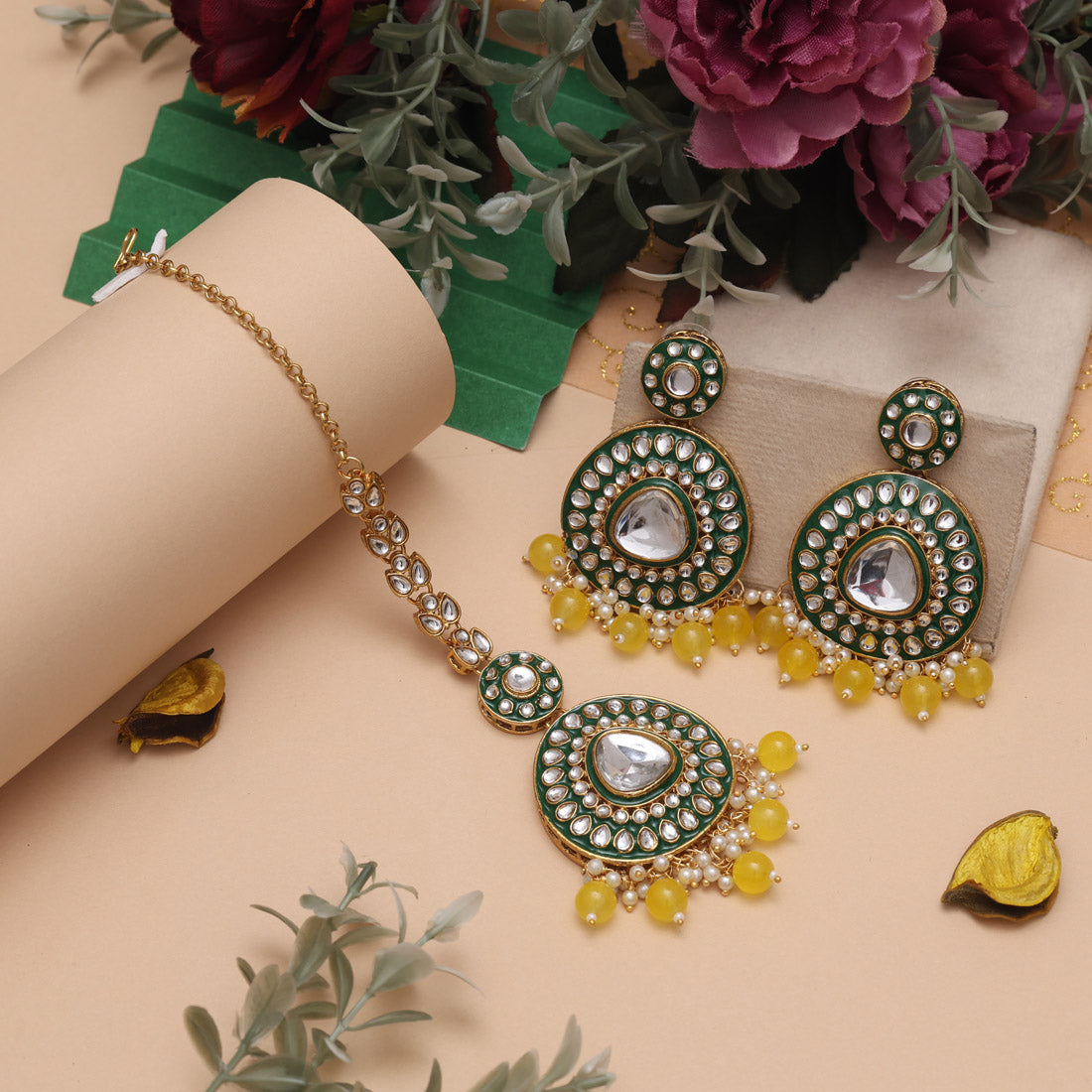 1 Piece Of Necklace:: 1 Pair Of Earring:: 1 Piece Of Maang Tikka
