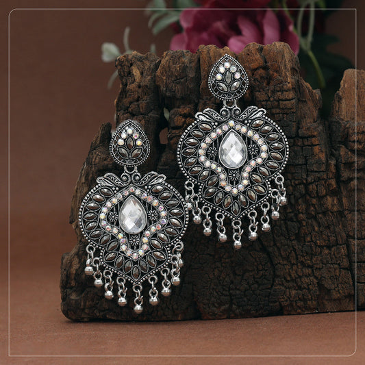 Beautiful Silver Color Oxidised Floral Inspired Long Dangle Fashion Earrings