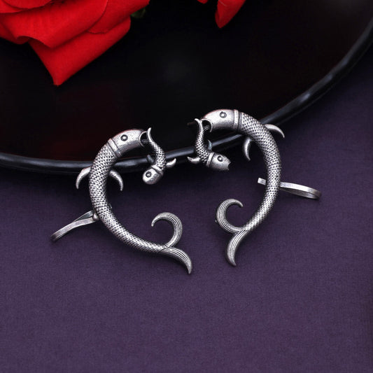Unique Silver Color Oxidised Kaanphool Ear Cuff Wedding Fashion Earrings